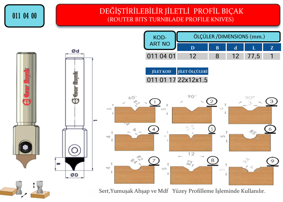 DEĞİŞTİRİLEBİLİR JİLETLİ PROFİL BIÇAK Sert,Yumuşak Ahşap ve Mdf Yüzey Profilleme İşleminde Kullanılır.