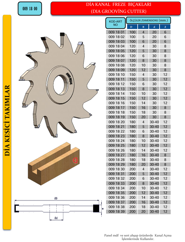 DİA KANAL FREZE BIÇAKLARI Panel mdf ve sert ahşap ürünlerde Kanal Açma İşlemlerinde Kullanılır