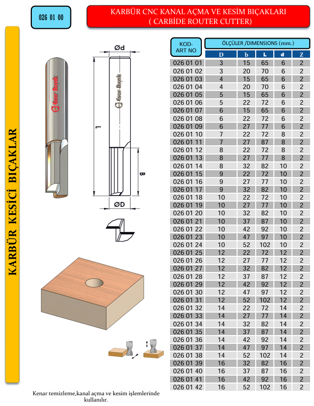 KARBÜR CNC KANAL AÇMA VE KESİM BIÇAKLARI Kenar temizleme,kanal açma ve kesim işlemlerinde kullanılır.