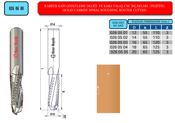 KARBÜR KAPI GÖZETLEME DELİĞİ VE DÜZ KESİM CNC BIÇAKLARI (POZİTİF)