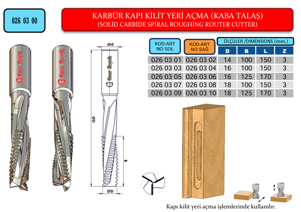 KARBÜR KAPI KİLİT YERİ AÇMA (KABA TALAŞ) Kapı kilit yeri açma işlemlerinde kullanılır.