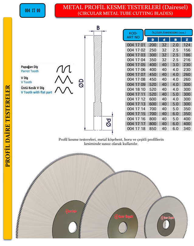 METAL PROFİL KESME TESTERELERİ (DAİRESEL)