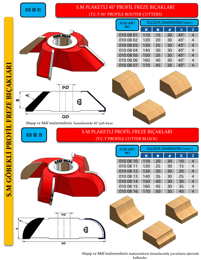 S.M PLAKETLİ 45° PROFİL FREZE BIÇAKLARI