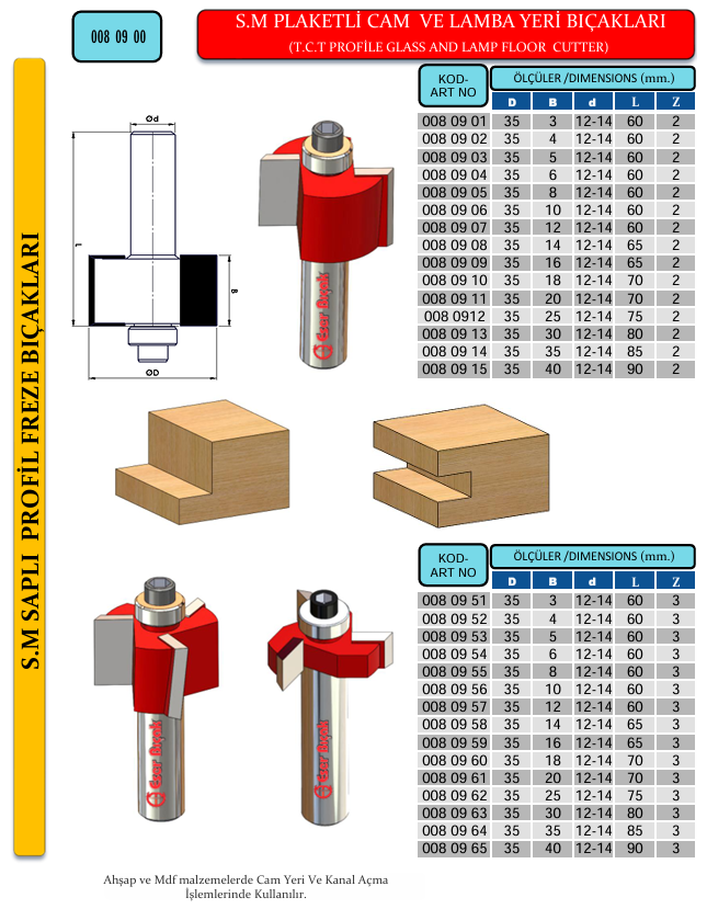 S.M PLAKETLİ CAM VE LAMBA YERİ BIÇAKLARI Ahşap ve Mdf malzemelerde Cam Yeri Ve Kanal Açma İşlemlerinde Kullanılır.