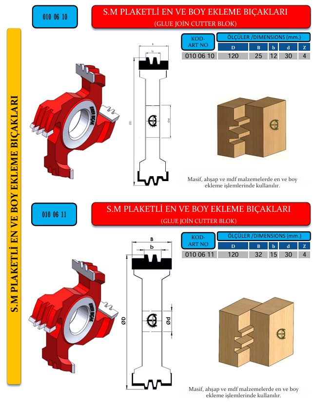 S.M PLAKETLİ EN VE BOY EKLEME BIÇAKLARI