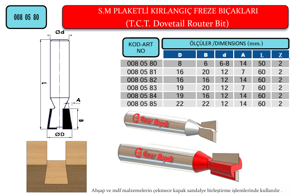 S.M PLAKETLİ KIRLANGIÇ FREZE BIÇAKLARI